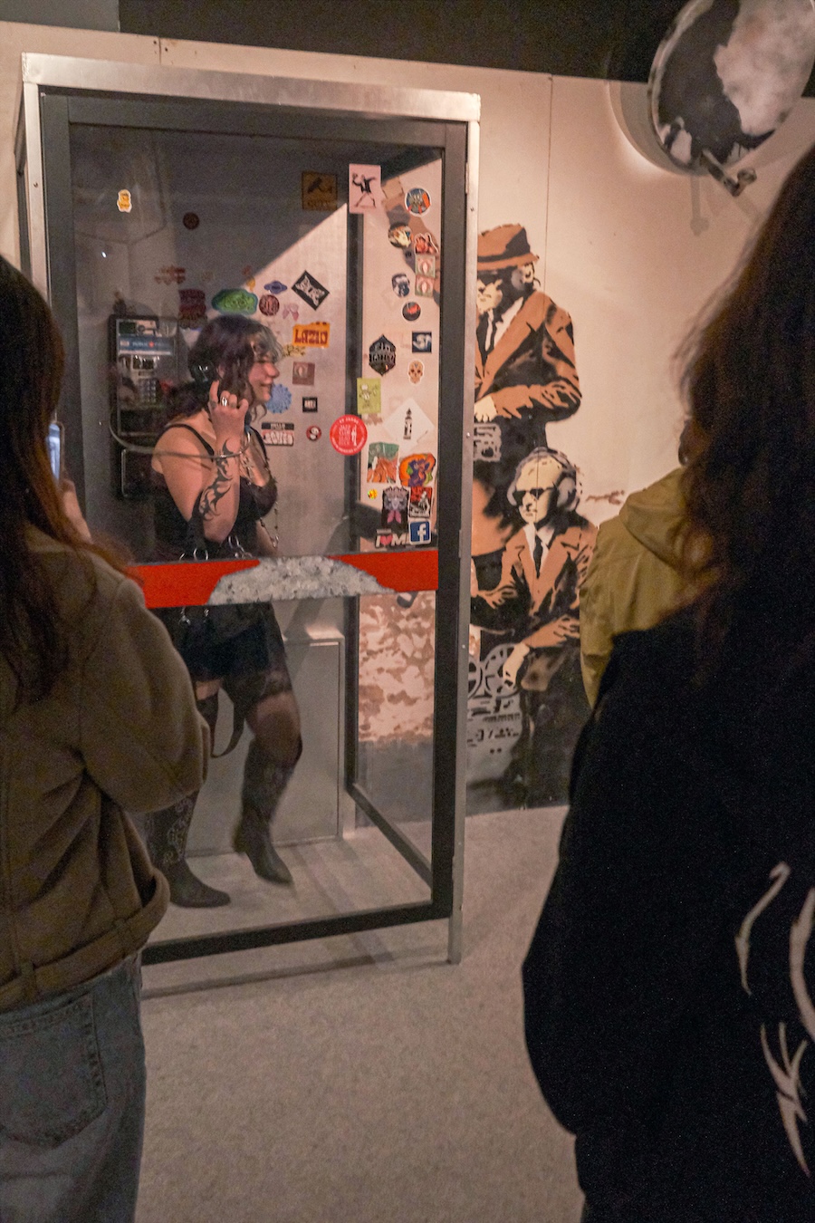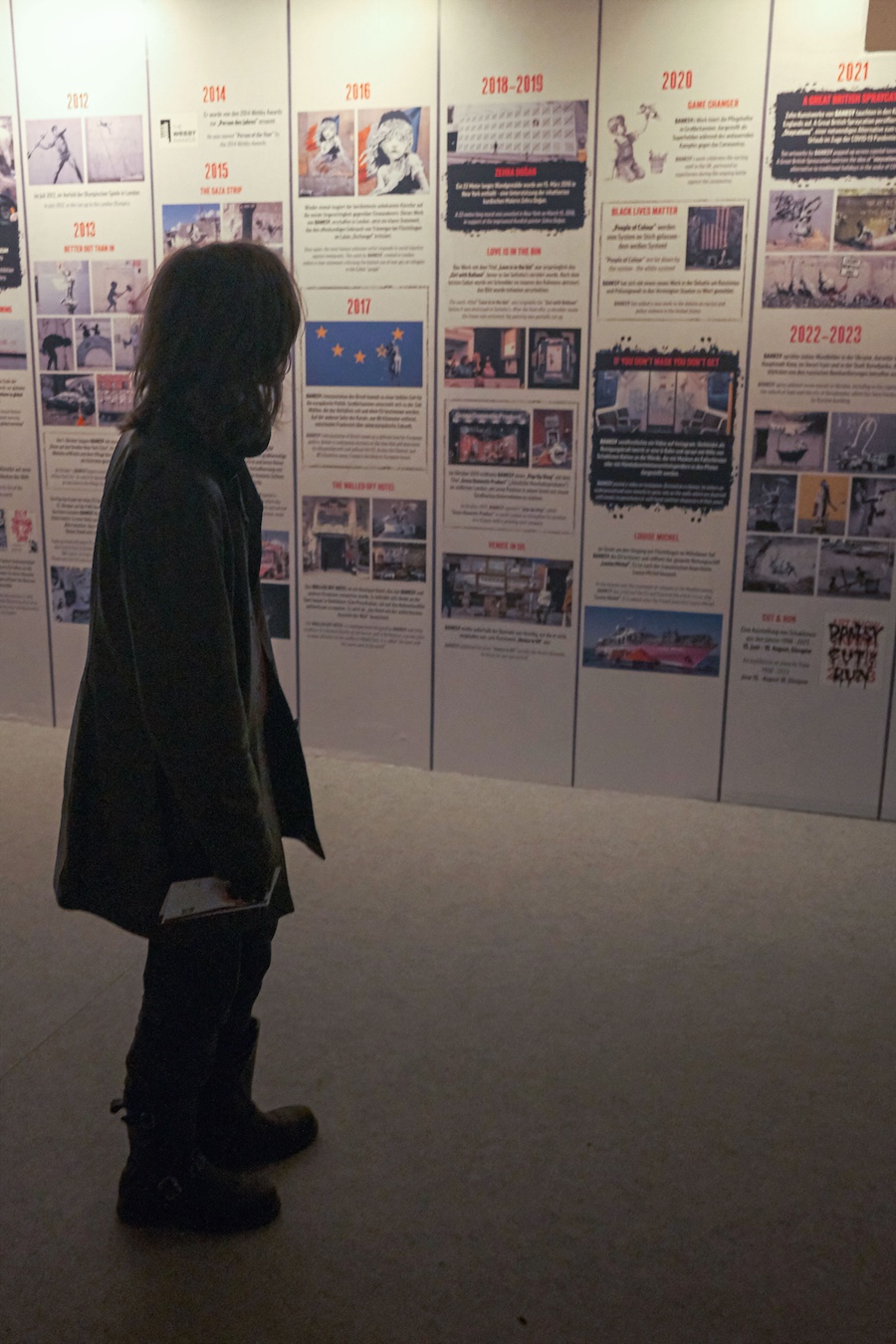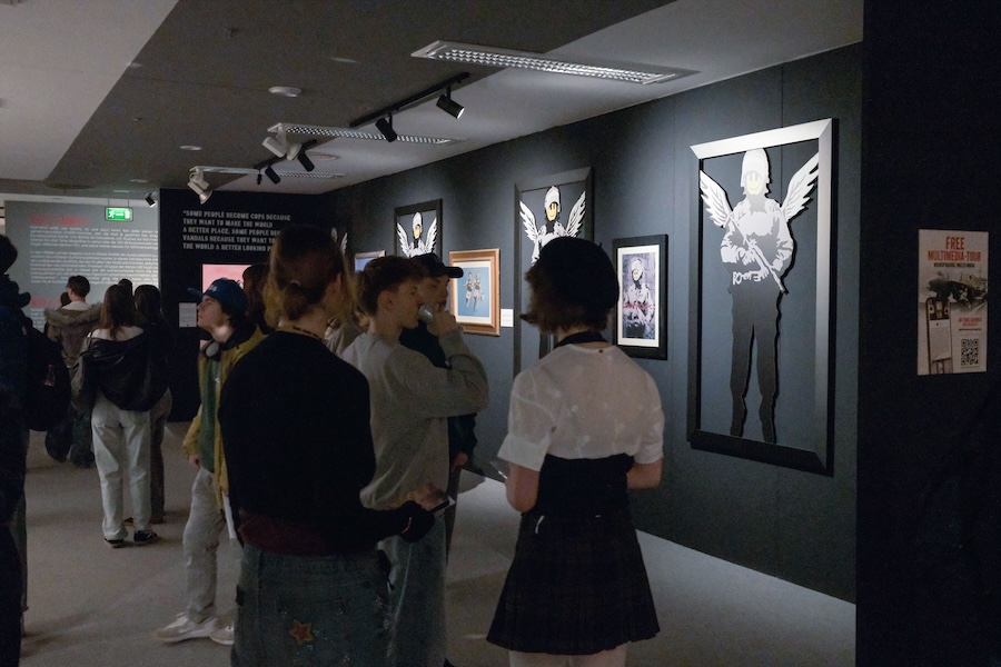 Die beeindruckende Ausstellung präsentierte der Mittelstufenklasse GTMM1 zahlreiche Werke, Reproduktionen und Installationen. Die Schülerinnen und Schüler konnten dabei nicht nur bekannte Motive wie das „Girl with Balloon“ oder den „Flower Thrower“ entdecken, sondern auch mehr über die gesellschaftskritischen Botschaften erfahren, die Banksy in seinen Arbeiten verarbeitet.