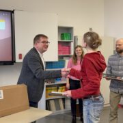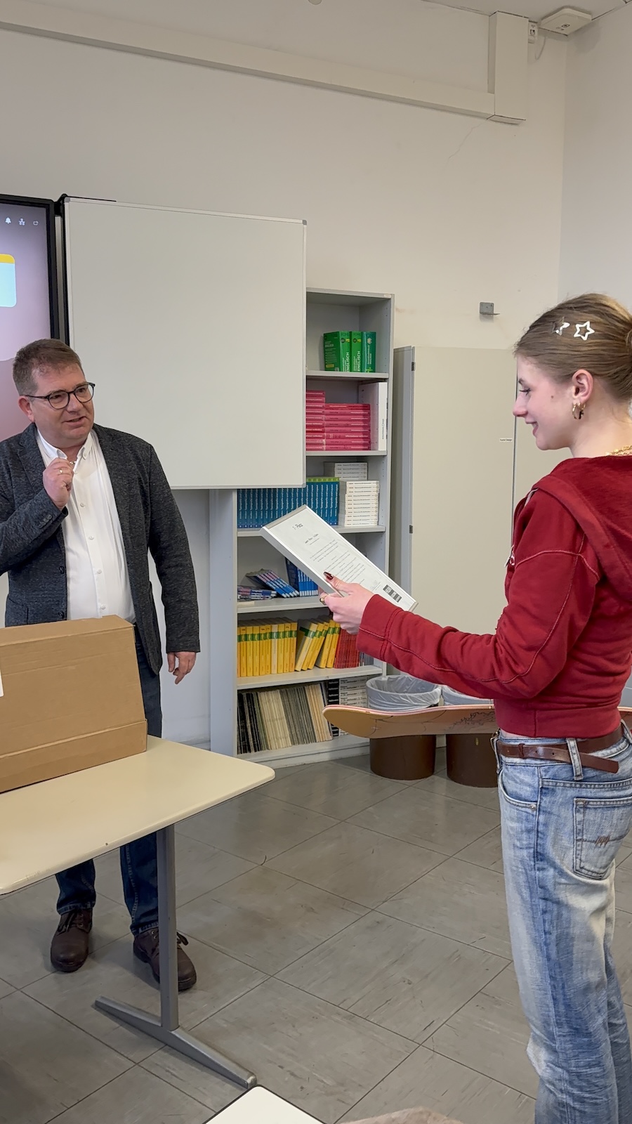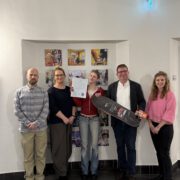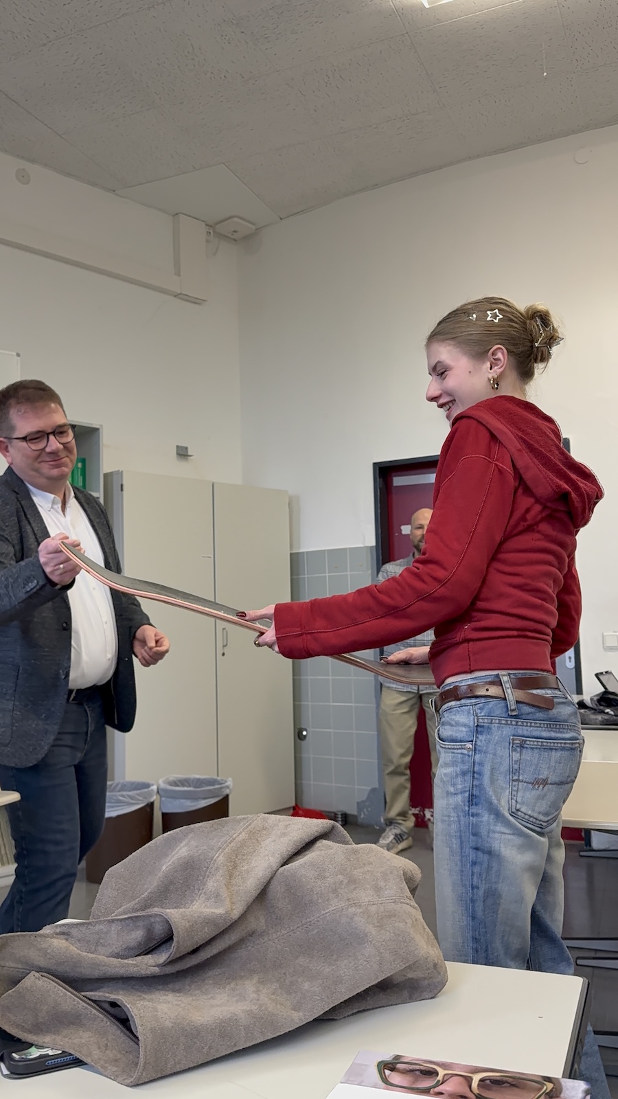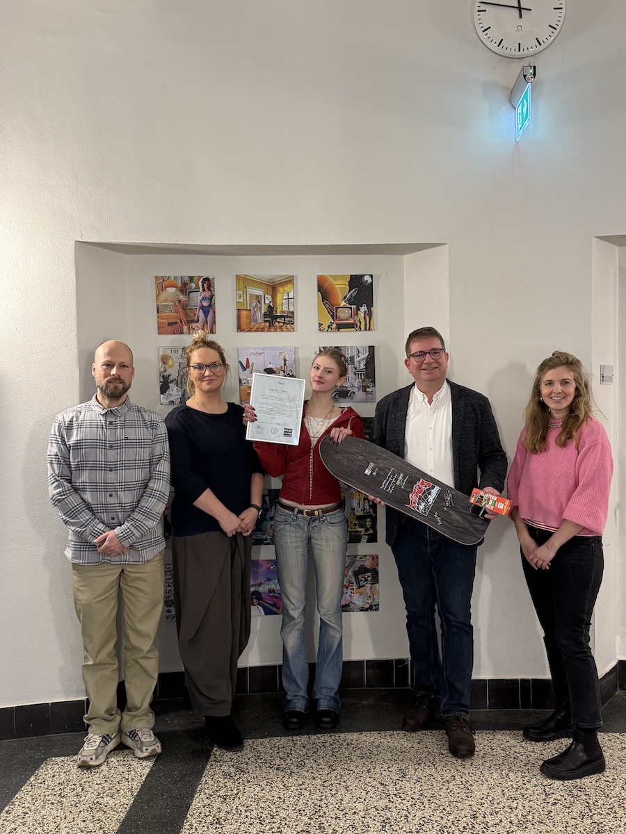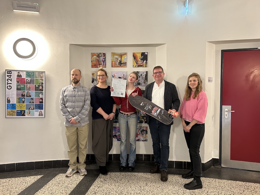 Mit Leeann freut sich das betreuende Lehrerteam. Wir bedanken uns herzlich bei Herrn Hilbk für die Unterstützung bei dem Projekt und gratulieren Leeann zu ihrem überzeugenden Entwurf und ihrer Auszeichnung.