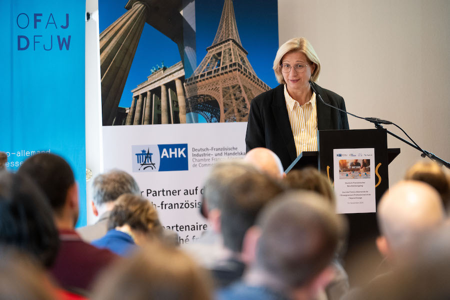 Isabelle Le Mouillour, Abteilungsleiterin des Bundesinstituts für Berufsbildung in Bonn (BIBB), machte darauf aufmerksam, dass laut Studien des BIBB der Anteil der Erwerbstätigen, die Fremdsprachen in der Arbeit benötigen, seit 2006 deutlich gestiegen und dass mit einer Fortsetzung dieses Trends zu rechnen sei.