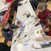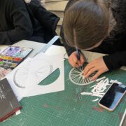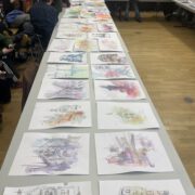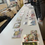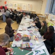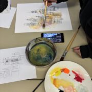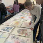 Die französische Schülergruppe ist im Rahmen des seit 2023 bestehenden Schüleraustauschs zwischen dem Lycée Georges Brassens und dem Adolph-Kolping-Berufskolleg von Paris nach Münster gereist und hat unter der Leitung von Erika Alexander und Anja Timpe an einem abwechslungsreichen Kunst- und Kulturprogramm teilgenommen. Dieses stand diesmal unter dem Motto „Urban impressions – die Stadt aus einem anderen Blickwinkel entdecken“. Nachdem die deutschen und französischen AustauschschülerInnen im vergangenen Oktober 2025 in Paris bereits die französische Hauptstadt aus unterschiedlichen Perspektiven in Dioramas dargestellt haben, ging es nun darum, die verschiedenen Gesichter Münsters in Collagen und aquarellierten Zeichnungen einzufangen.