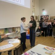 Neben der Präsentation der Schülerarbeiten, war die Ausstellung auch ein guter Anlass, um in Anwesenheit von Vertretern der EU-Geschäftsstelle der Bezirksregierung Münster die Deutsch-Französische Zusatzqualifikation „DFZQ pro“ zu vergeben, die die deutschen SchülerInnen im Rahmen des Schüleraustauschs erwerben. Die DFZQ pro bescheinigt den SchülerInnen den Erwerb von fachlichen, beruflichen, interkulturellen und fremdsprachlichen Kompetenzen im Rahmen eines binationalen Projektes.