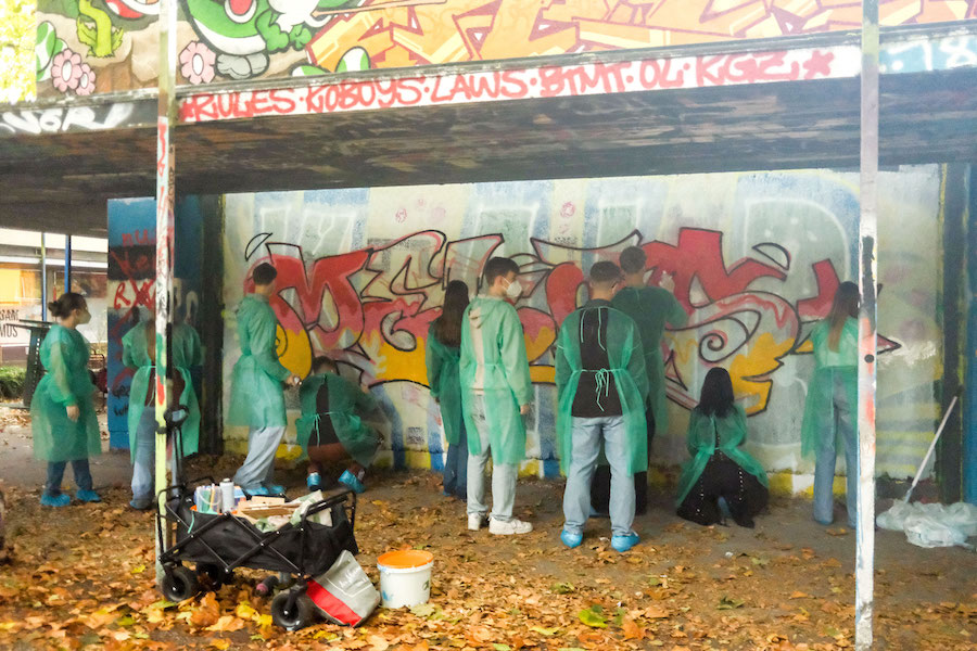 Gleich zu Beginn konnten die Schülerinnen und Schüler bei einer einstündigen Hafenrundfahrt den Hamburger Hafen aus nächster Nähe erleben und spannende Einblicke in die Geschichte und Bedeutung des größten Seehafens Deutschlands gewinnen. Anschließend wurde es kreativ: In einem Graffiti-Workshop tauchte die Gruppe in die urbane Street-Art-Szene ein und konnte eigene Kunstwerke gestalten – ein besonderes Erlebnis, das vielen noch lange in Erinnerung bleiben wird.