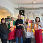 Mit Stolz nahm die Klasse die Lieferung der Brötchentüten entgegen. Auf diese Weise erhalten die gestalterischen Arbeiten der SchülerInnen eine breite Öffentlichkeit und schaffen ein deutliches Bewusstsein für das Thema „Gewalt gegen Frauen und Mädchen“.