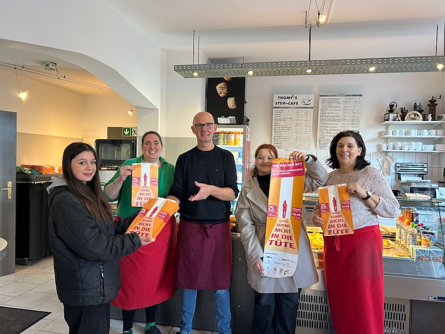 Das AKBK setzt mit der Gestaltung, Annahme und Verteilung der Tüten ein deutliches Zeichen gegen Gewalt.